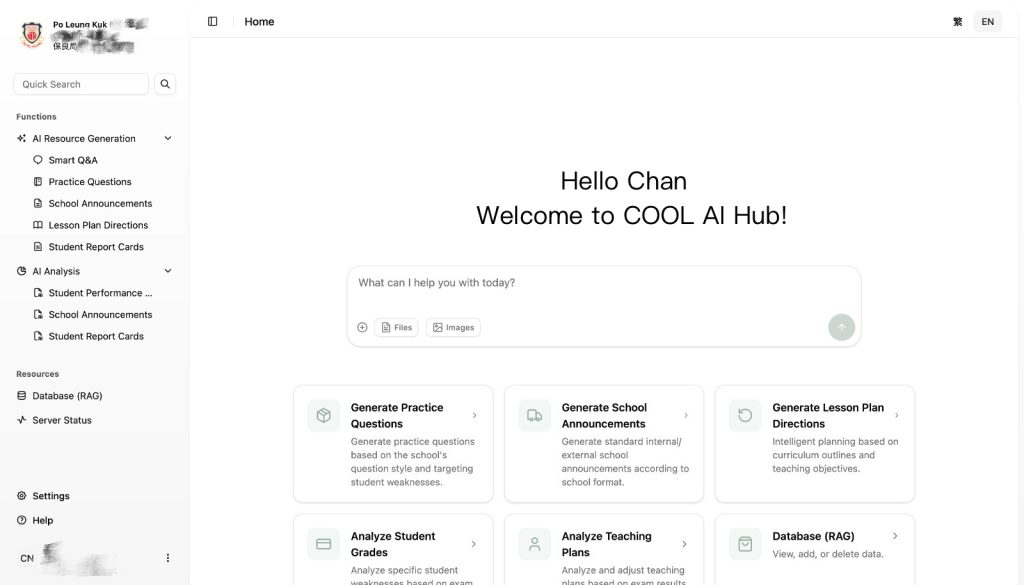 由本公司專為香港本地教育系統設計的 AI 教育平台,透過收集超過500位香港教師意見調整模型,協助學校提升整體教學與行政效能。